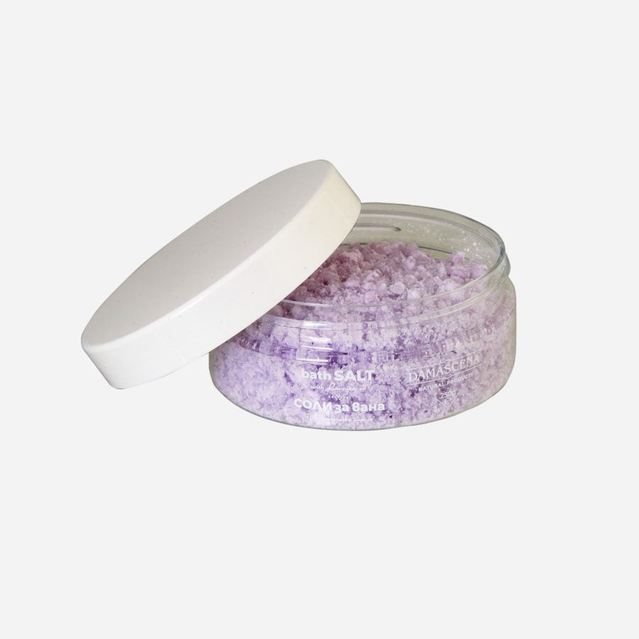 Badesalz mit Lavendelöl ist ein vollständig natürliches Produkt, das zur Hydratisierung und Erfrischung der Haut beiträgt.